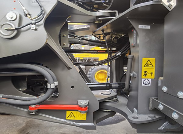 L975F侧卸装载机标配26.5-25型大轮胎,行驶平稳耐磨性高。bsports必一体育自制加强型驱动桥,令整机承载能力大,制动平稳。双回路全液压制动系统,如果一路制动失效,另一路仍旧起作用,安全可靠。